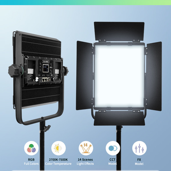 360개의 전체 RGB 색상과 14개의 사전 설정 효과가 있는 RGB led 비디오 조명 GL-600C는 프로그래밍 시간을 절약하는 데 도움이 됩니다. 2700-7500K 바이 컬러 조명 또는 RGB 컬러 조명용 높은 CRI95.양방향 AC 또는 DC v 마운트 배터리 전원 공급 장치는 실내 또는 실외 촬영에 적합합니다.외부 전원 공급 장치, 리모컨, 전원 코드가 함께 제공됩니다.무선 DMX 시스템을 사용할 수 있는 wift 컨트롤러를 추가하는 것이 좋습니다.